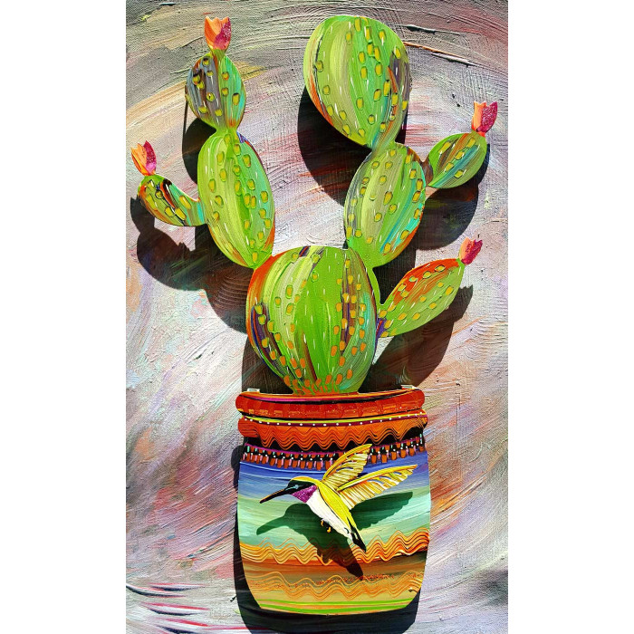 10"x10". Three-dimensional hand-painted on metal with wall hangers on the back. Fo..