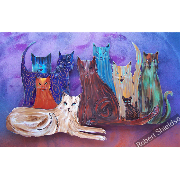 12"x12.5". Hand-painted metal with wall hangers on back. Signed by the artist, Robert Shields...