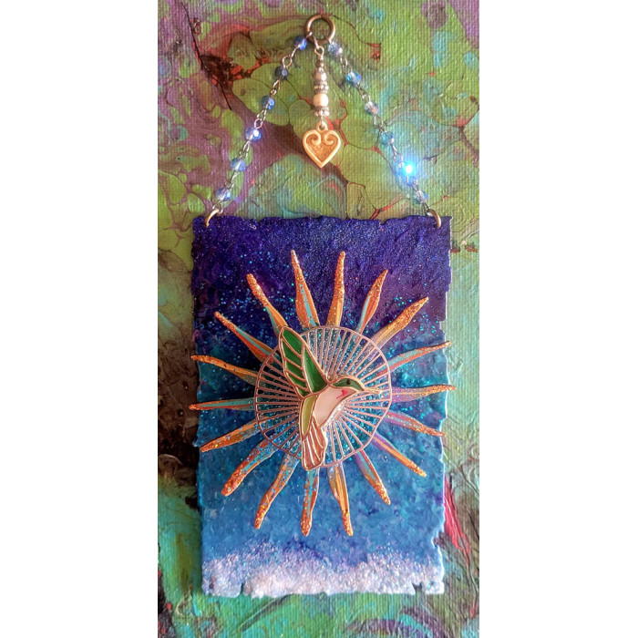 7" X 3". Three-dimensional hand-painted on metal with beads and charms. Wall hangers on back. Signed by the artist, Robert Shields.