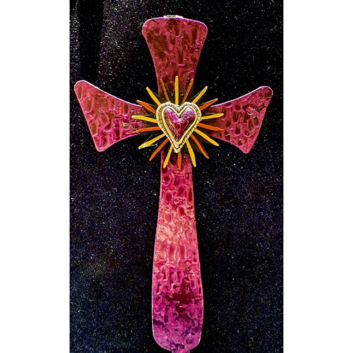 7” X4” sweet little love cross, hand painted metal wall mount on back, signed