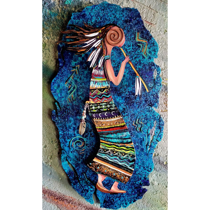 18"x5". Made of metal and hand painted with great detail, wall hangers on back. Signed by the artist..
