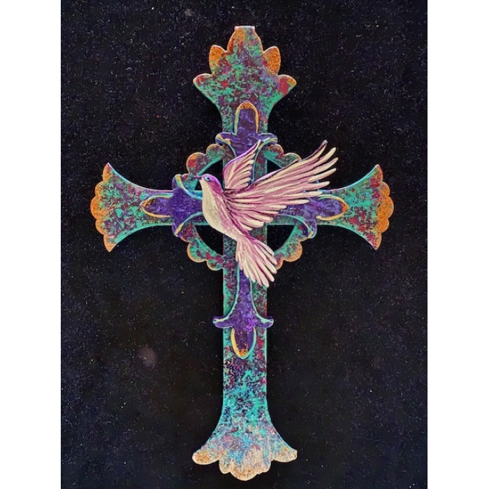 10"x10". Three-dimensional hand-painted on metal with wall hangers on the back. Fo..