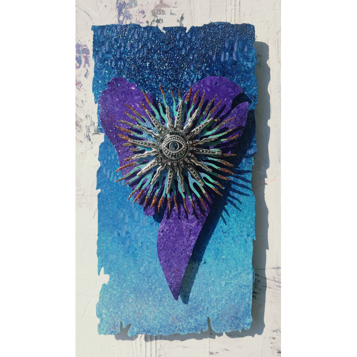 13"x13 highly detailed filgree heart sun is stunning in person.wall brackets on back signed by ..