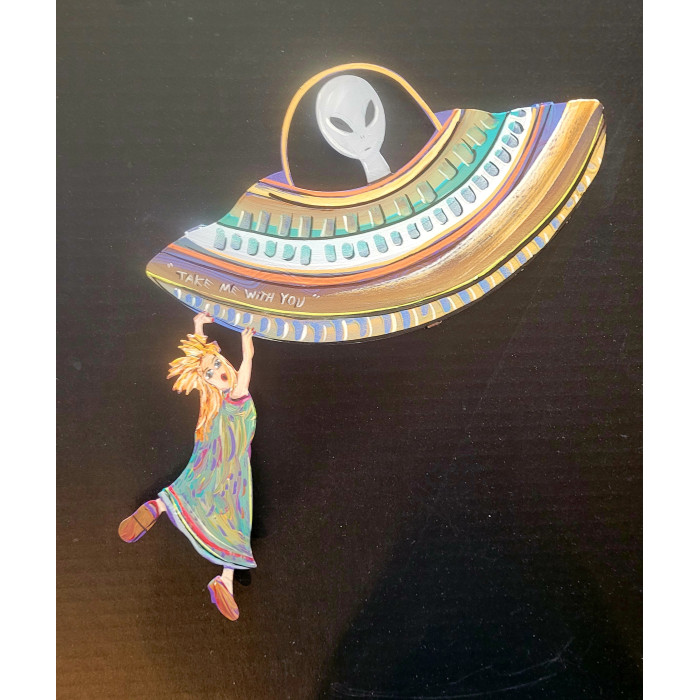 12"x12.5". Hand-painted metal with wall hangers on back. Signed by the artist, Robert Shields...