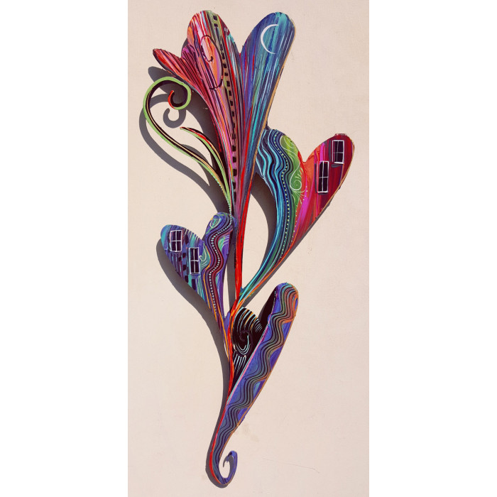 10"x10". Three-dimensional hand-painted on metal with wall hangers on the back. Fo..