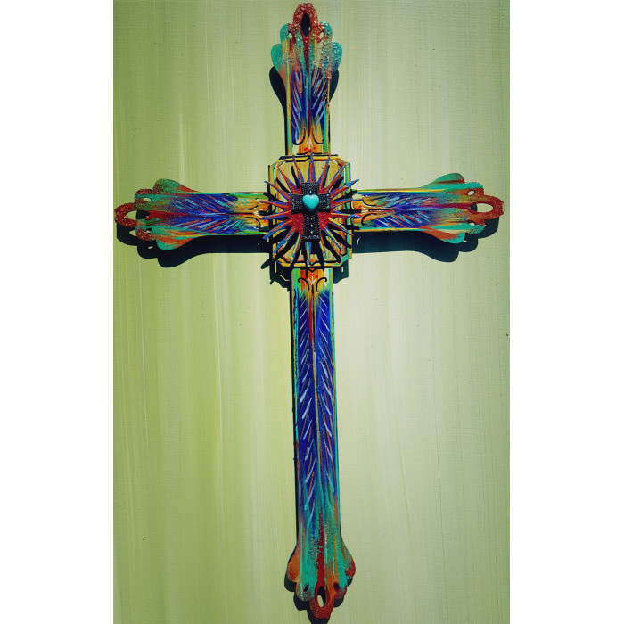 10"x10". Three-dimensional hand-painted on metal with wall hangers on the back. Fo..